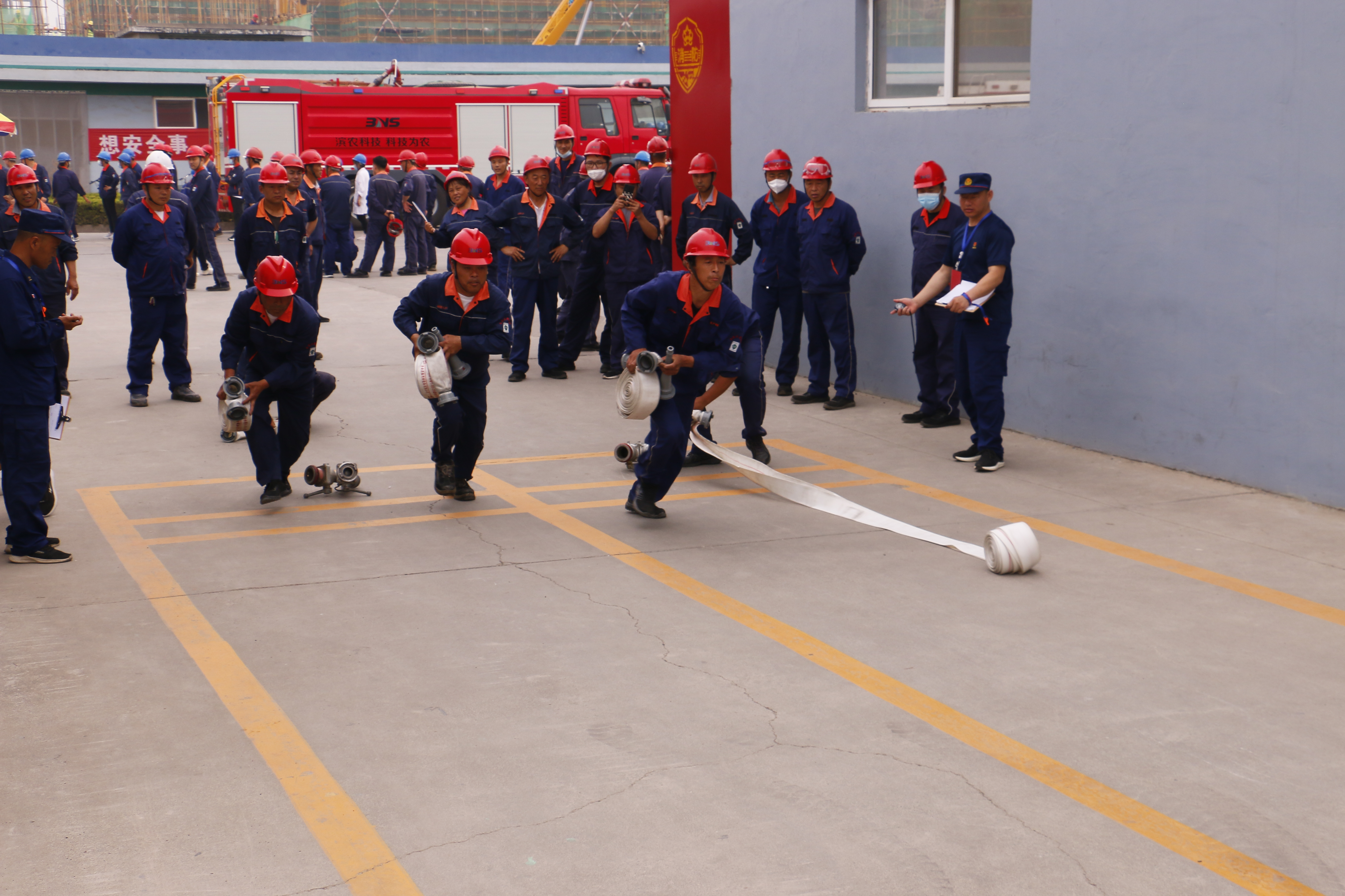 6月17日,我公司護衛隊聯合安全部組織開展了應急能力競賽,共26個車間部門148人參加。競賽項目包括滅火器操作、消防水帶操作、正壓式空氣呼吸器佩戴及使用、濾毒罐的選型及應急疏散逃生,旨在以賽查缺,以賽促改,提高車間員工對應急器材實踐操作技能及面對突發事故時的應急處理能力。最終,品管部房志輝、制劑四車間范亮亮、制劑六車間尹寶翠名列滅火器操作前三名;脫鹽工段王景超、張連對,合成三車間張金燦、王彬,制劑二車間孫軍義、張國利名列消防水帶操作前三名;合成十車間郭云亭、動力車間喬金波、 鍋爐工段馬秀亮名列空呼器佩戴前三名;合成四車間梅異凡、合成十一車間田燕濤、危廢處理車間劉國才名列濾毒罐選型前三名。