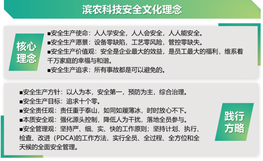 《安全文化手冊(cè)》由集團(tuán)培訓(xùn)及企業(yè)文化部主導(dǎo)編寫(xiě),共分“5篇、21節(jié)、2談、1倡議”,從領(lǐng)導(dǎo)作用到理念系統(tǒng)、制度保障、員工行為、環(huán)境建設(shè),全面梳理構(gòu)建起了1.0版的濱農(nóng)科技安全文化體系,為公司實(shí)現(xiàn)“全員、全過(guò)程、全方位、全天候”的全面安全管理奠定文化基石,為激發(fā)全員參與的信念和行動(dòng)樹(shù)起文化旗幟,明確公司零事故的管理追求,梳理實(shí)現(xiàn)零事故的管理方法。